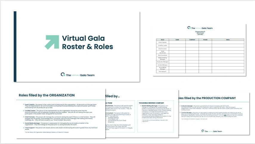 They likely will have a studio and all the equipment used to livestream the event. They will delegate assignments to their team members. They are in communication with the Event Captain, Gala Consultant, and Host/Auctioneer.